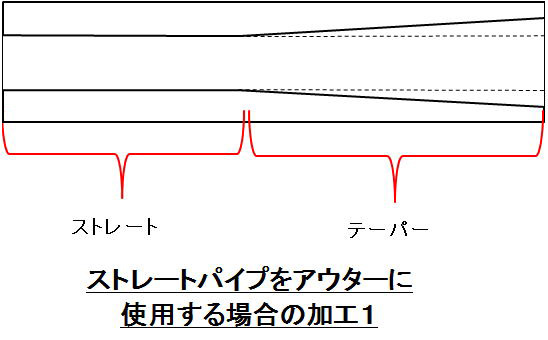 工作用途の汎用ストレートカーボンパイプをアウターに使用する場合の中級加工のイメージです。 |